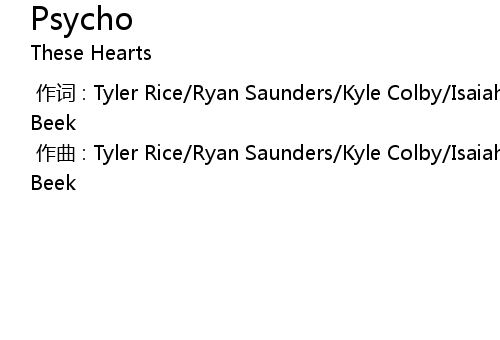 | [00:00.000] | 作词 : Tyler Rice/Ryan Saunders/Kyle Colby/Isaiah Folk/Daryl Van Beek |