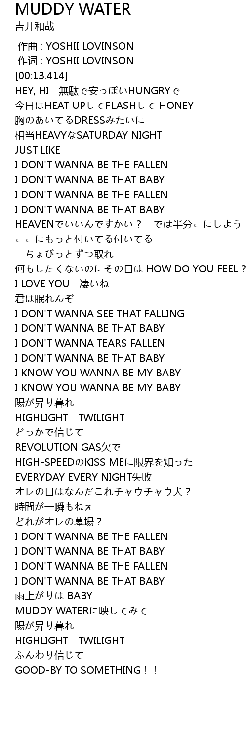 | [00:01.000] | zuo ci : YOSHII LOVINSON |