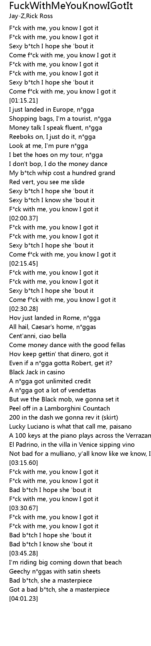 | [00:58.17] | Come f*ck with me, you know I got it |