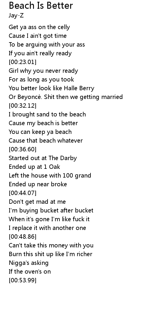 | [00:33.48] | Cause my beach is better |