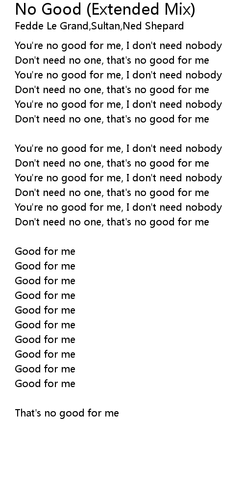 You're no good for me, I don't need nobody |