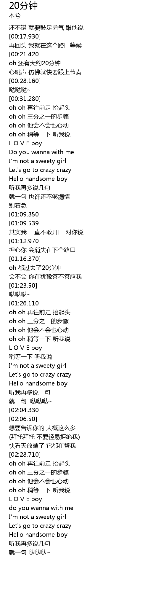 | [00:22.110] | oh hai you da yue 20 fen zhong |