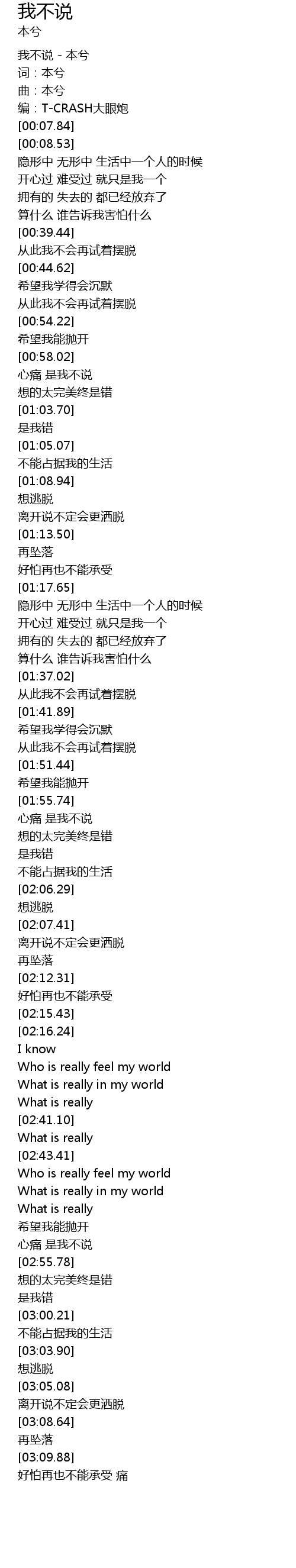 | [01:55.93] | xīn tòng shì wǒ bù shuō |