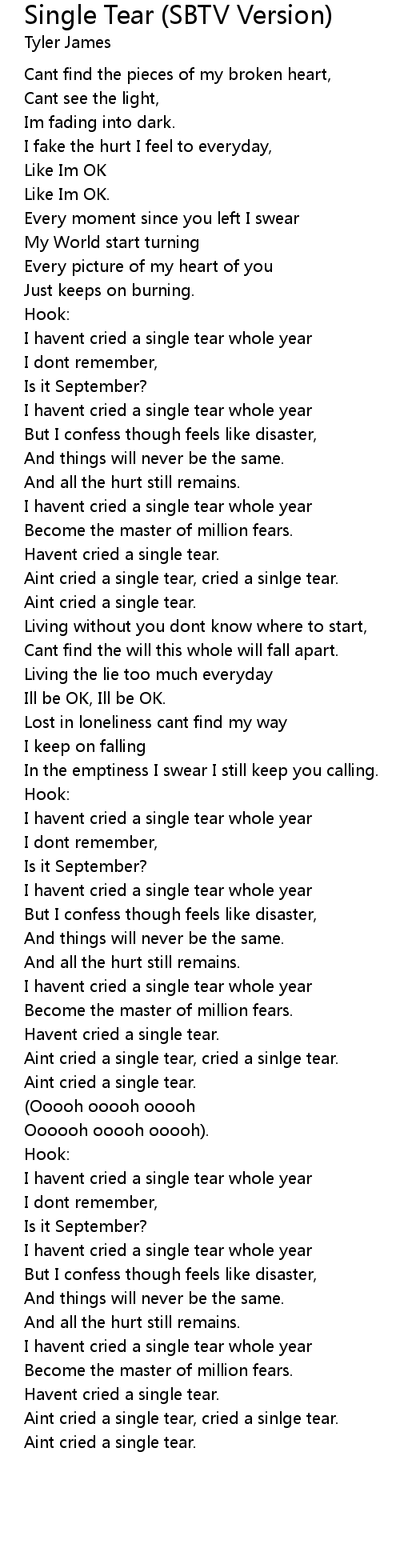 Aint cried a single tear. |