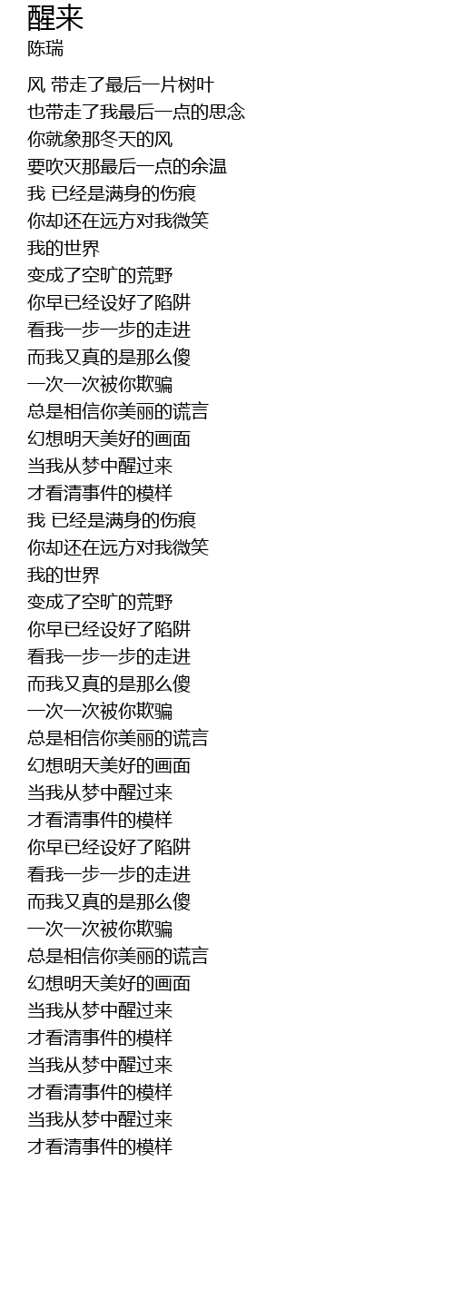 | [03:44.000] | dāng wǒ cóng mèng zhōng xǐng guò lái |