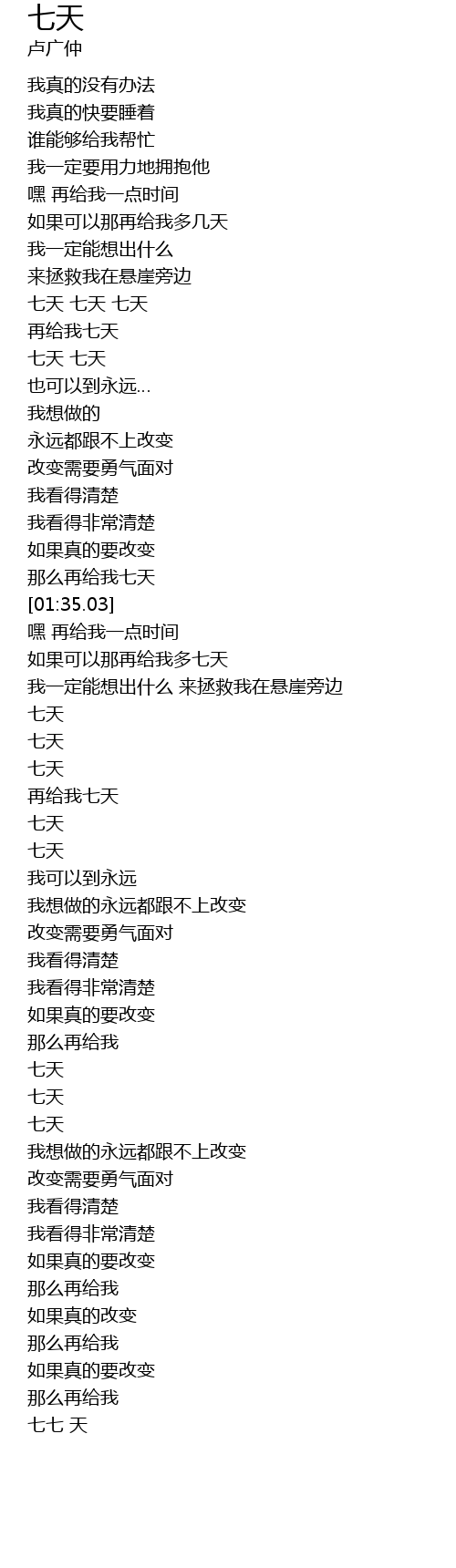 | [01:32.25] | nà me zài gěi wǒ qī tiān |