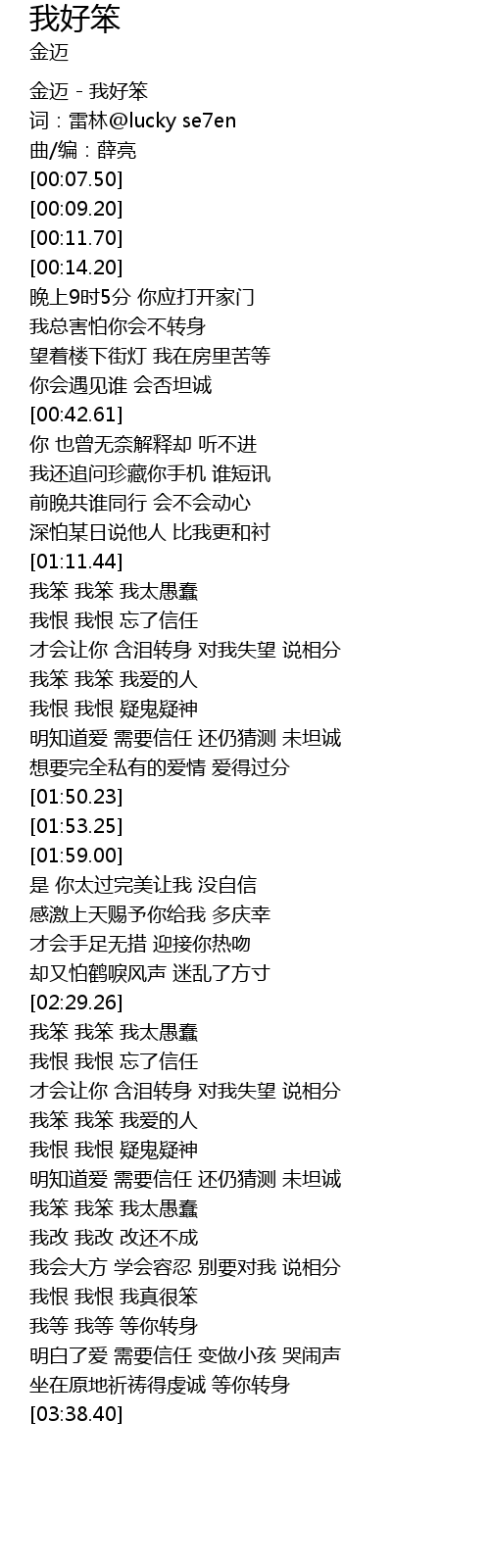 | [00:01.00] | 金迈 - 我好笨 |