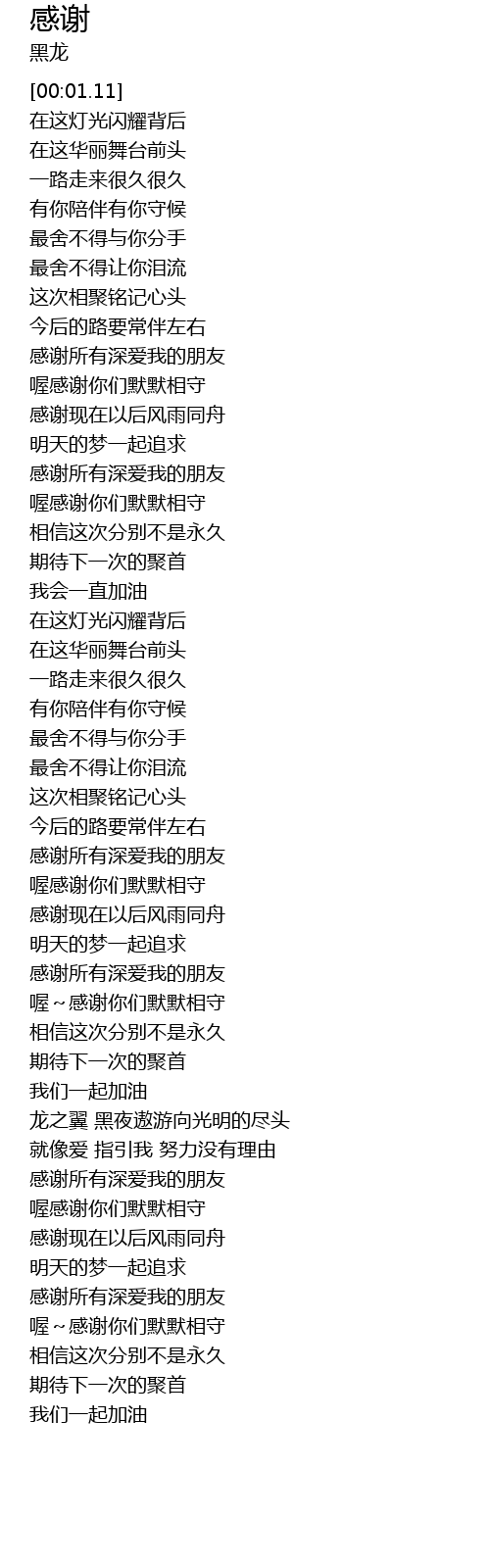 | [01:21.63] | 感谢所有深爱我的朋友 |