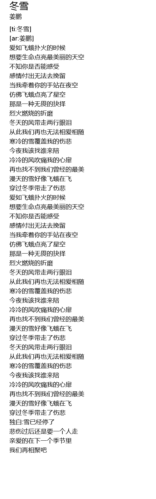| [00:49.53] | 冬天的风带走两行眼泪 |