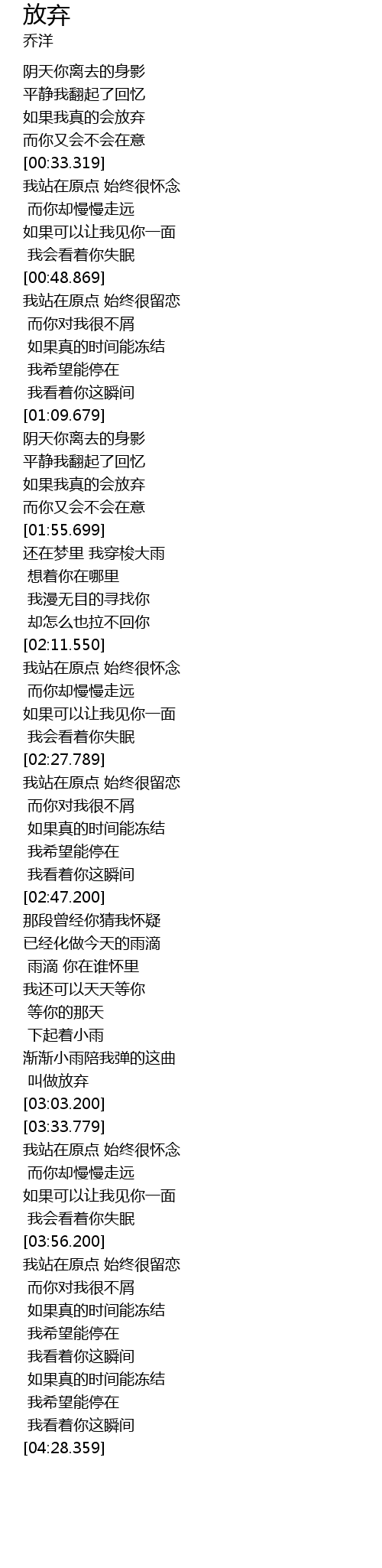 | [00:33.859] | wǒ zhàn zài yuán diǎn shǐ zhōng hěn huái niàn |