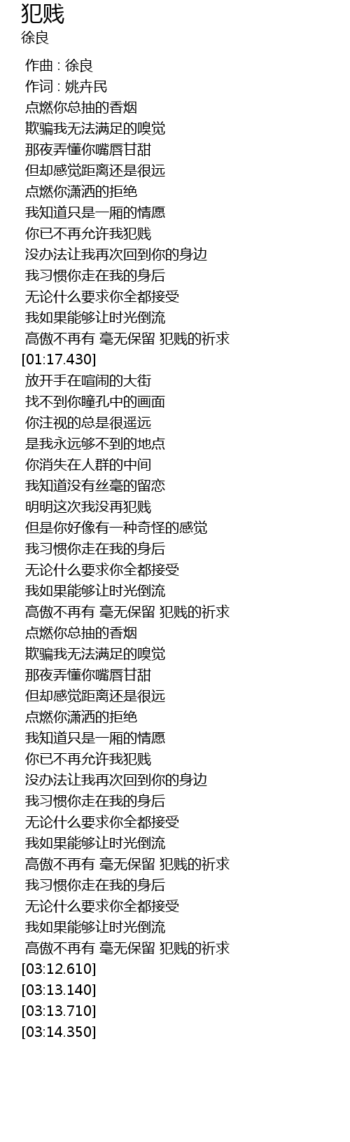 | [03:05.360] | 高傲不再有 毫无保留 犯贱的祈求 |
