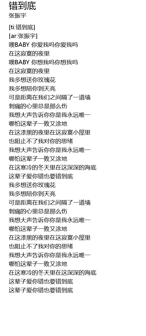 | [01:58.580] | 这辈子爱你错也要错到底 |