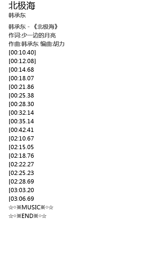 | [00:06.91] | 作曲:韩承东 编曲:胡力 |