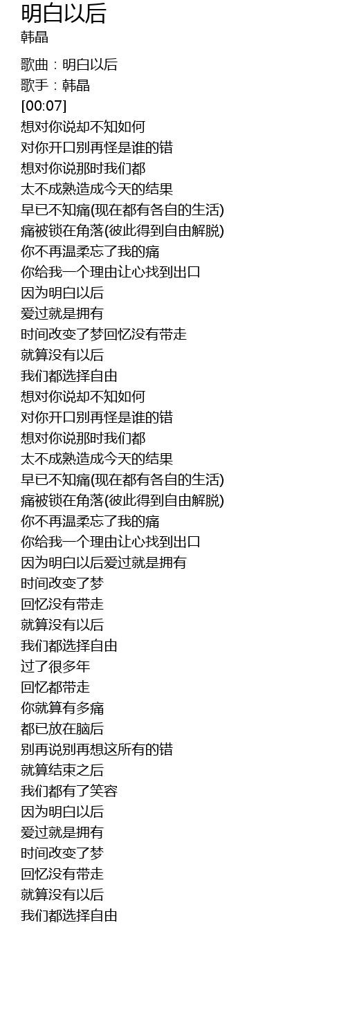 | [00:02] | 歌曲:明白以后 |