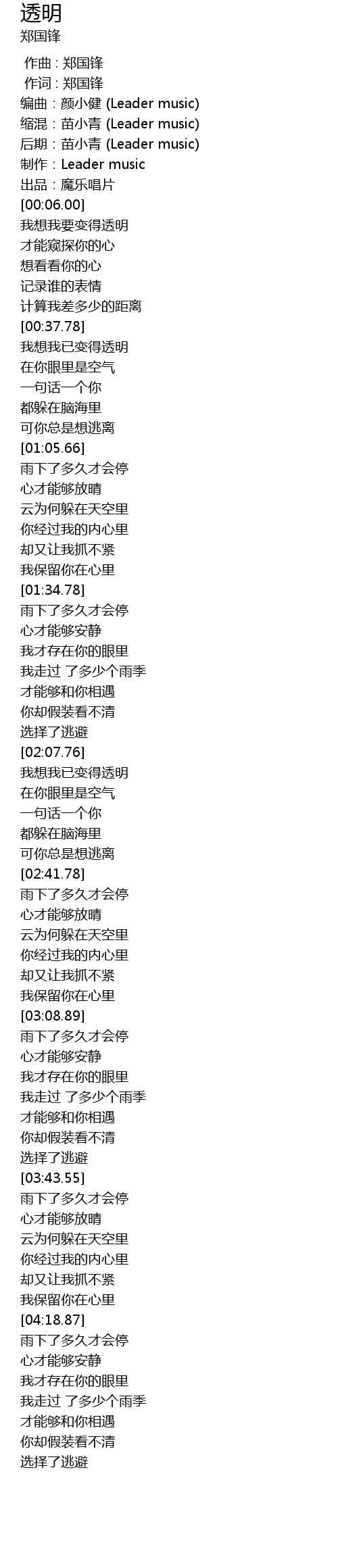 | [00:00.00] | 作曲 : 郑国锋 |
