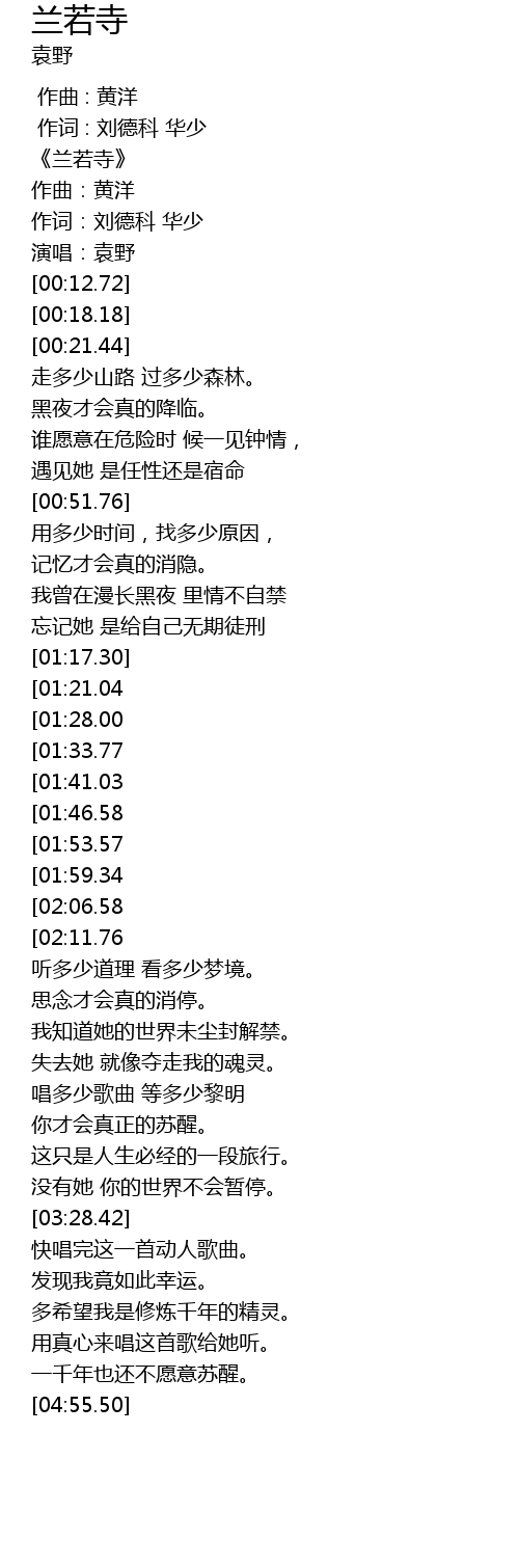 | [04:04.83][01:53.57] | 若经过兰若寺 天亮假装镇定。 |