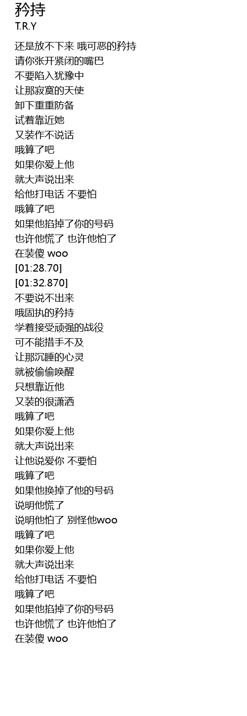 | [01:57.900] | 哦固执的矜持 |