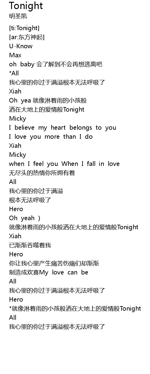 | [00:31.438]U-Know] | 请抓住我的手抱紧我靠在我胸膛让体温充满着彼此 |