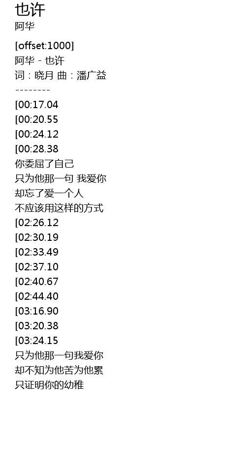 | [03:09.72][02:40.67][00:59.33] | 算了吧 放了吧 |