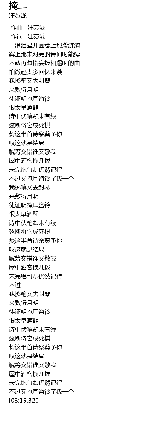 | [00:00.00] | 作曲 : 汪苏泷 |