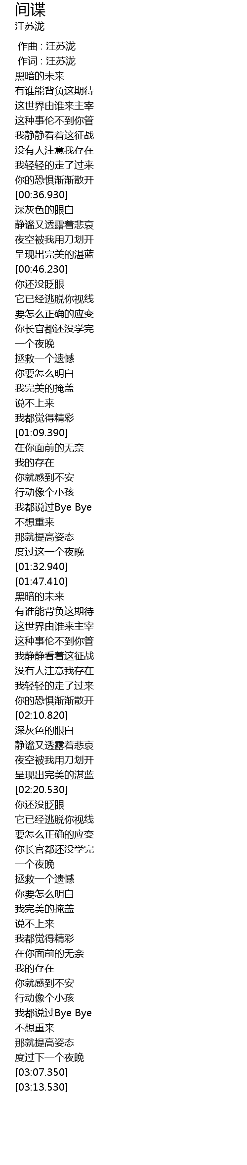 | [00:00.00] | 作曲 : 汪苏泷 |