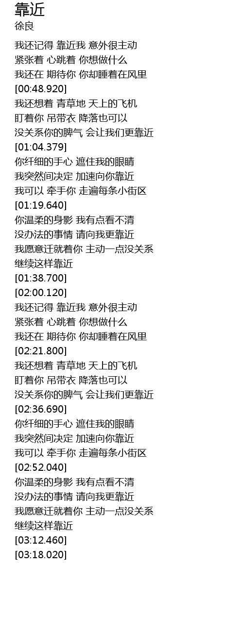| [00:34.480] | 我还记得 靠近我 意外很主动 |