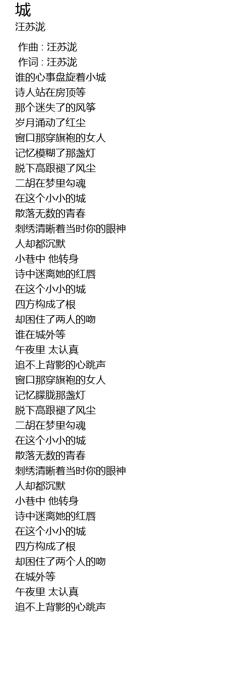 | [00:14.440] | 谁的心事盘旋着小城 |