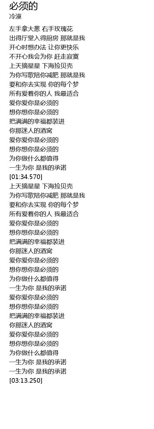 | [02:20.690] | 爱你爱你是必须的 |