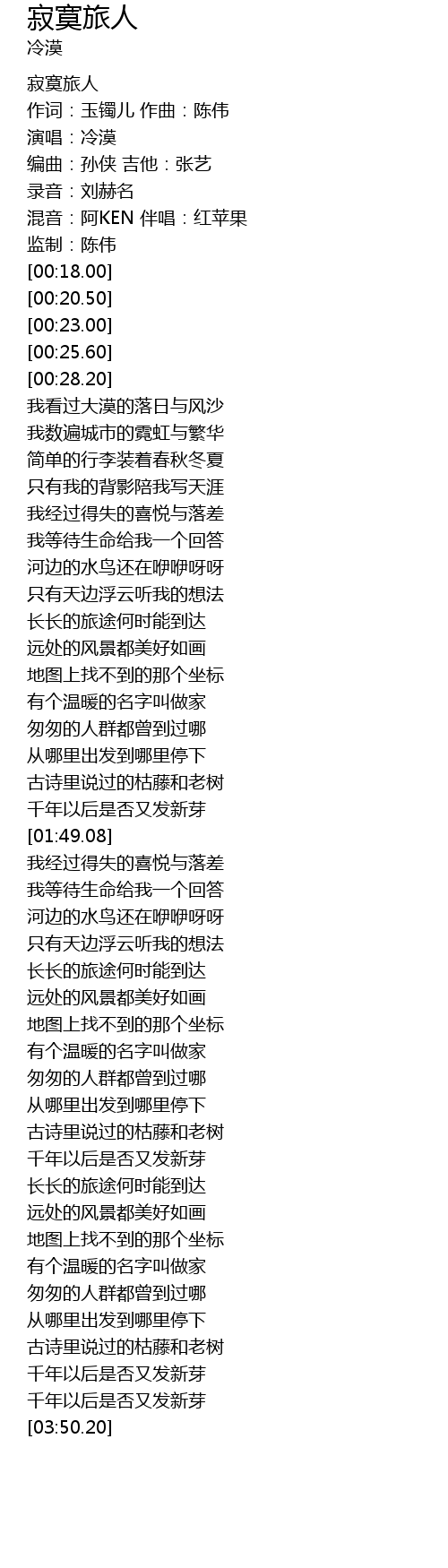 | [01:37.73] | 古诗里说过的枯藤和老树 |