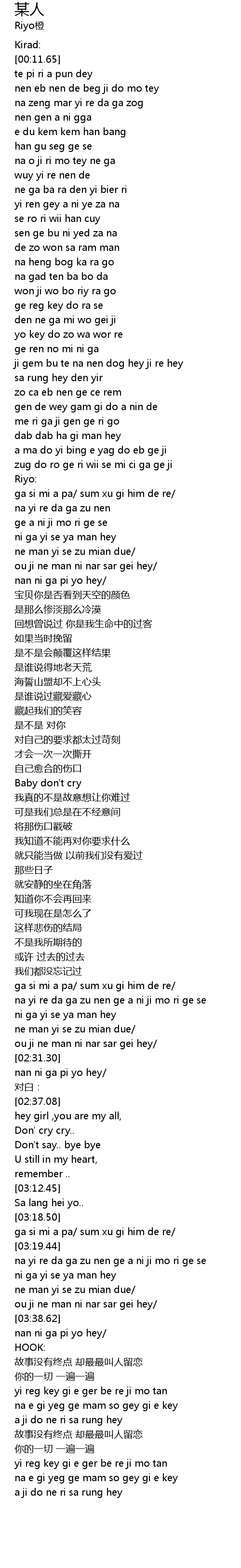 | [00:34.85] | yi ren gey a ni ye za na |