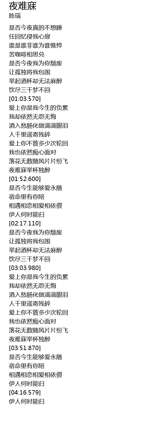 | [00:17.360] | 是否今夜真的不想睡 |