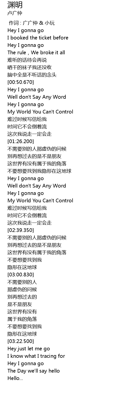 | [00:00.00] | 作词 : 广广仲 & 小玩 |