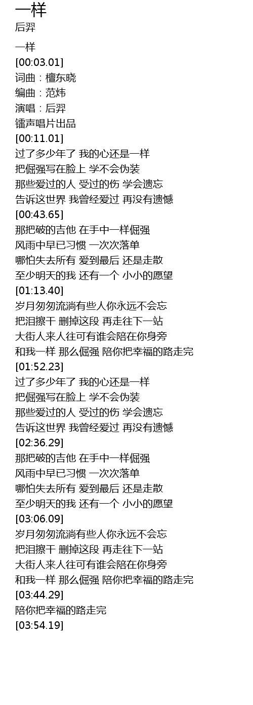 | [00:14.92] | 过了多少年了 我的心还是一样 |
