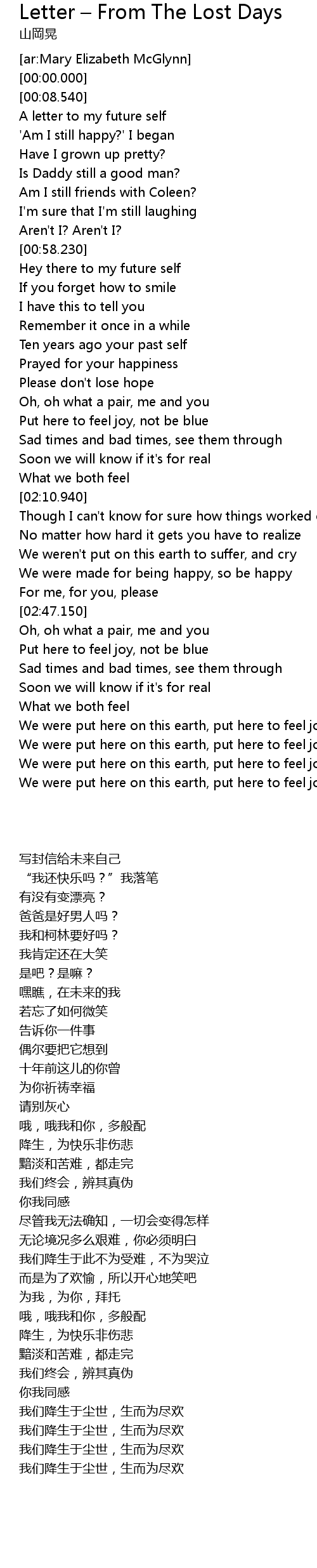 [02:55.290] Put here to feel joy, not be blue