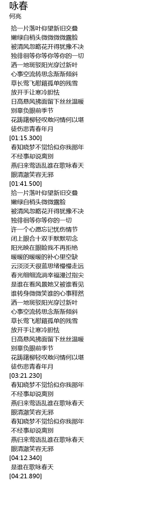 | [03:59.300] | 燕归来莺语乱谁在歌咏春天 |