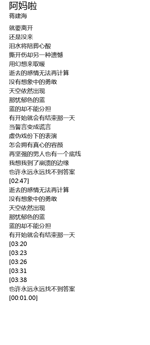 | [02:47] | 也许永远永远找不到答案 |