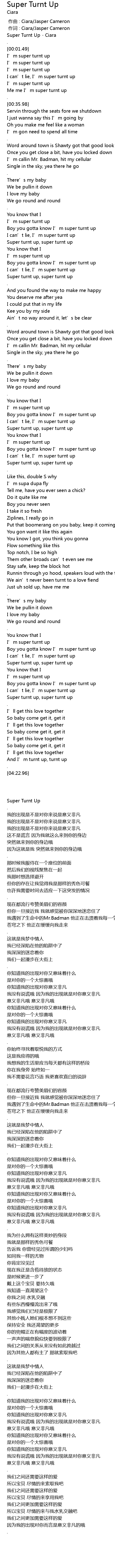 | [00:00.18] | Super Turnt Up - Ciara |
