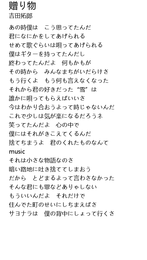 | Song | 赠り物 |