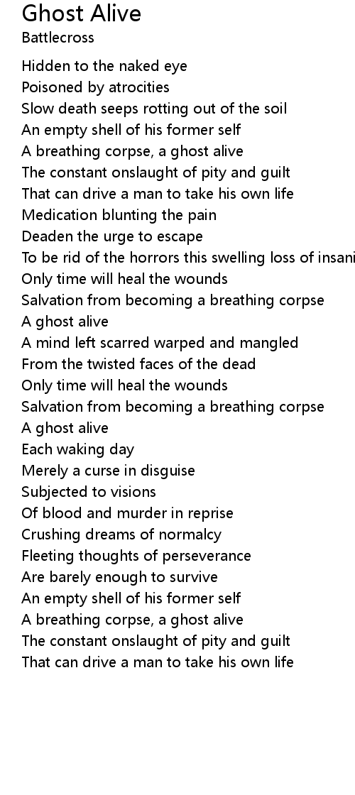 A breathing corpse, a ghost alive |