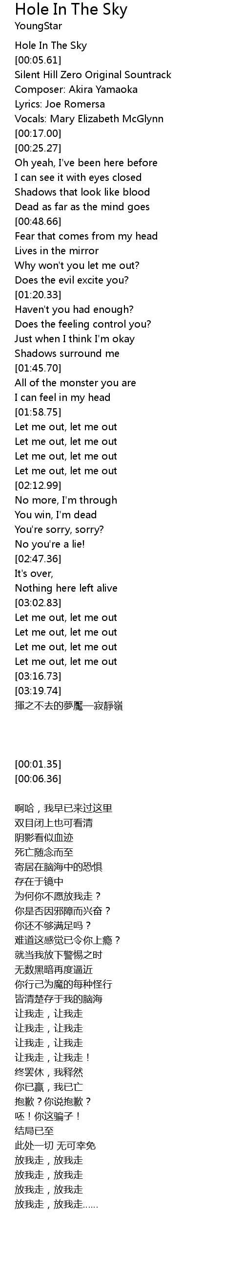 | [00:06.36] | Silent Hill Zero Original Sountrack |