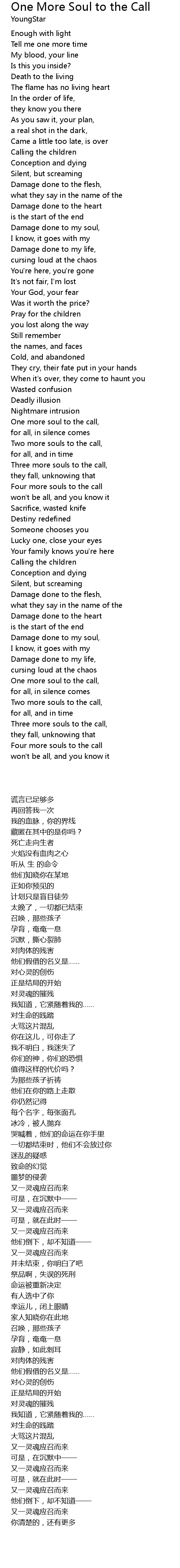 One more soul to the call, |