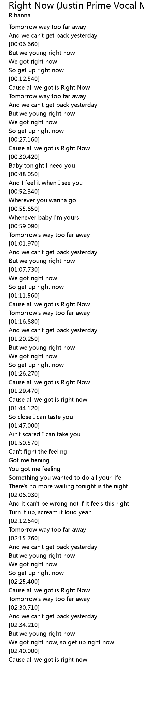 Cause all we got is Right Now |