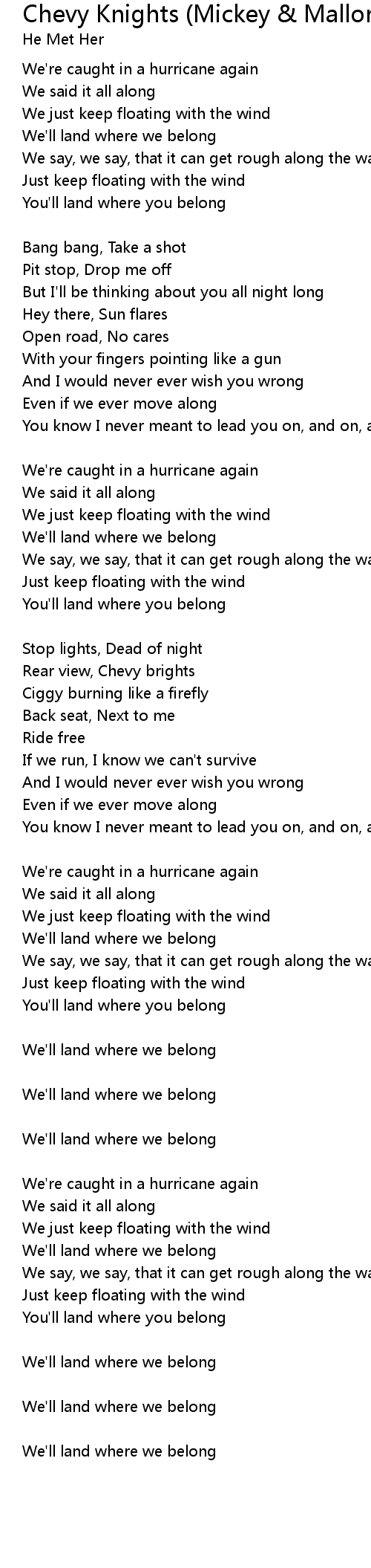 We'll land where we belong |
