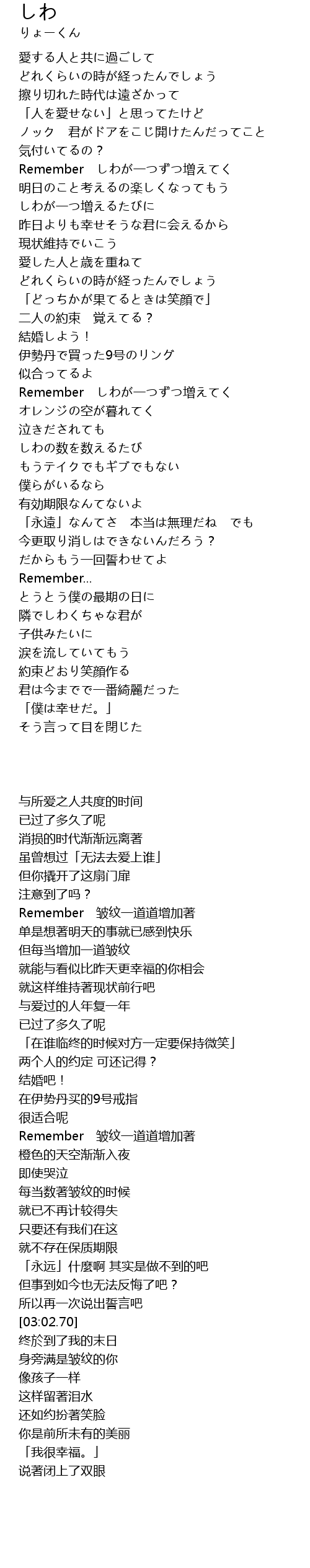 | [01:54.40] | Remember しわが一つずつ増えてく |