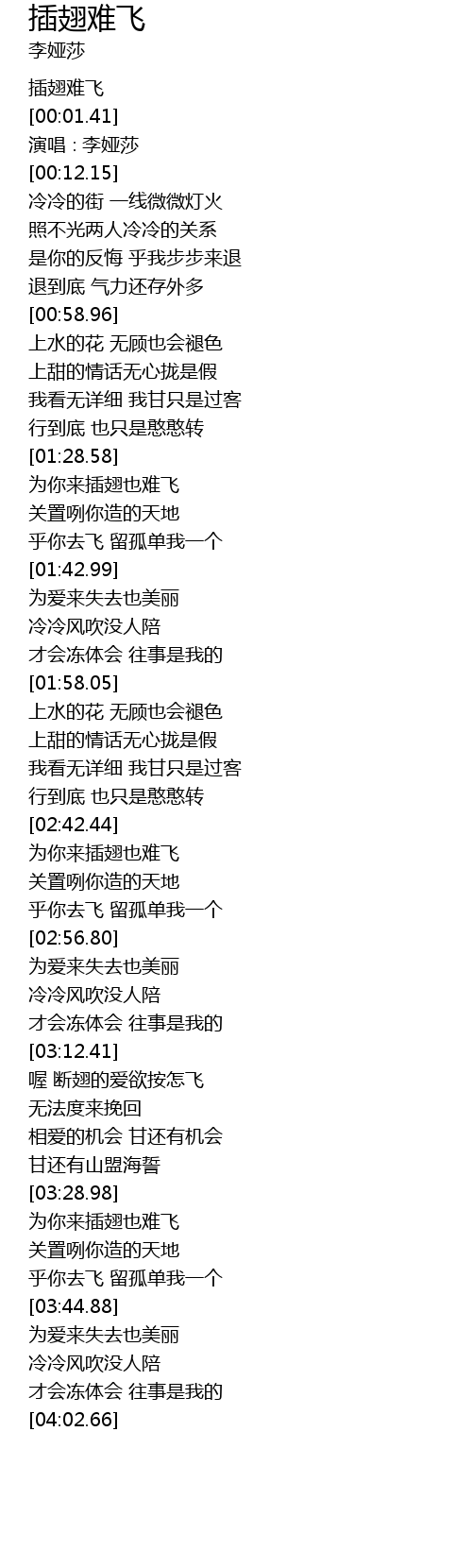 | [02:42.73] | wèi nǐ lái chā chì yě nán fēi |