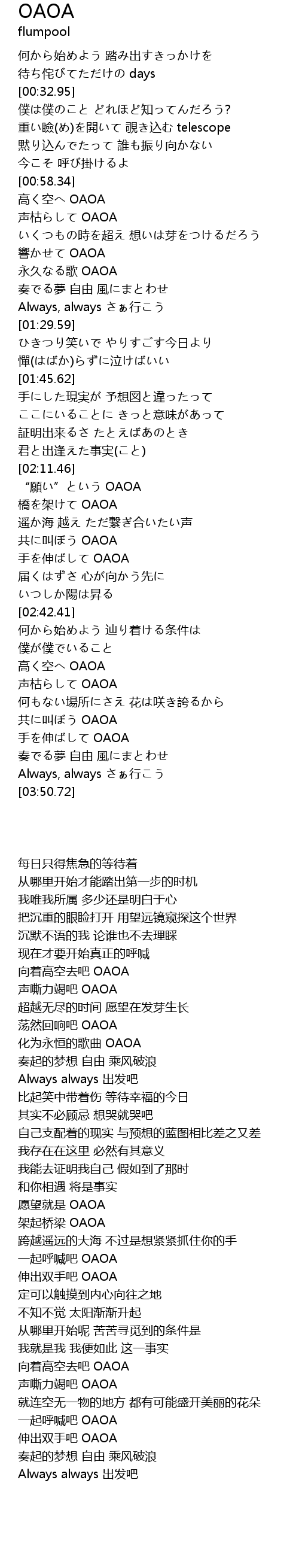 | [01:15.09] | yǒng jiǔ gē OAOA |