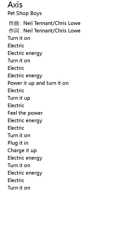 | [00:01.00] | 作词 : Neil Tennant/Chris Lowe |