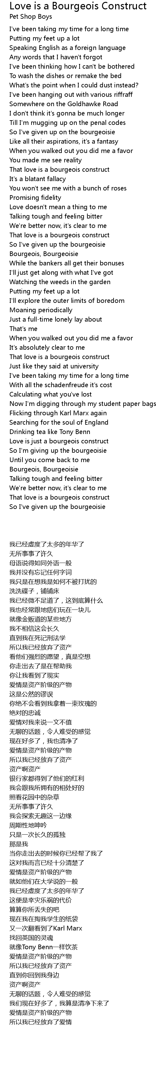 So I've given up the bourgeoisie |