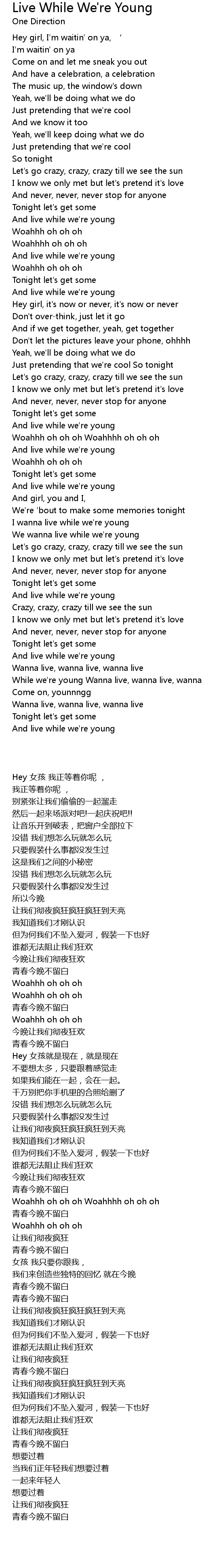 | [03:04.300] | While we' re young Wanna live, wanna live, wanna live |