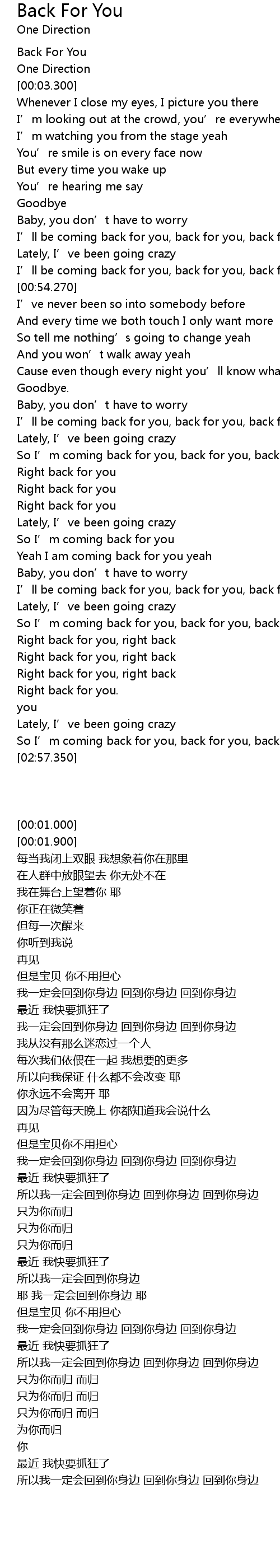| [00:01.000] | Back For You |